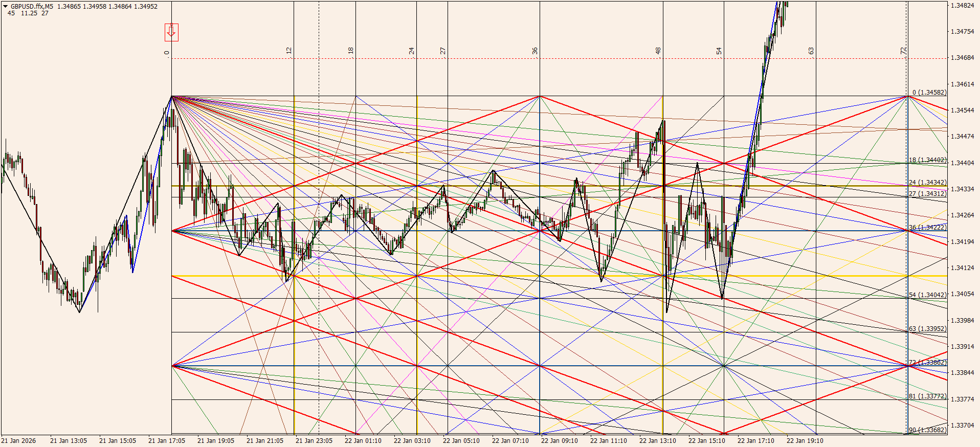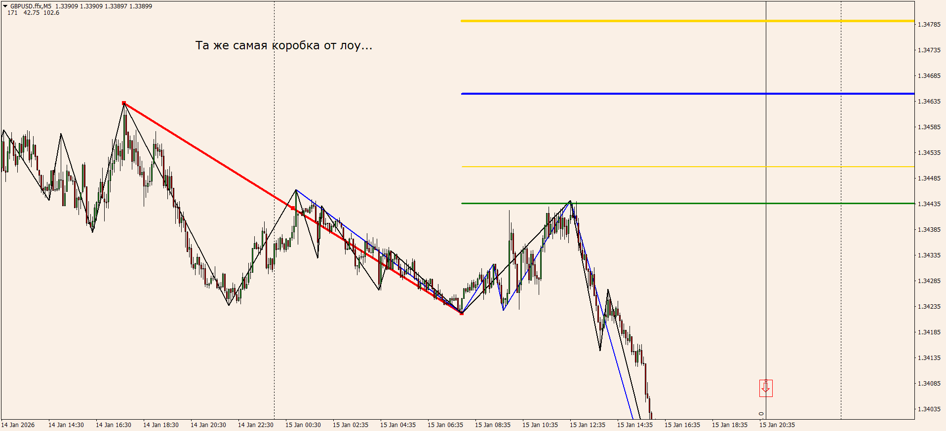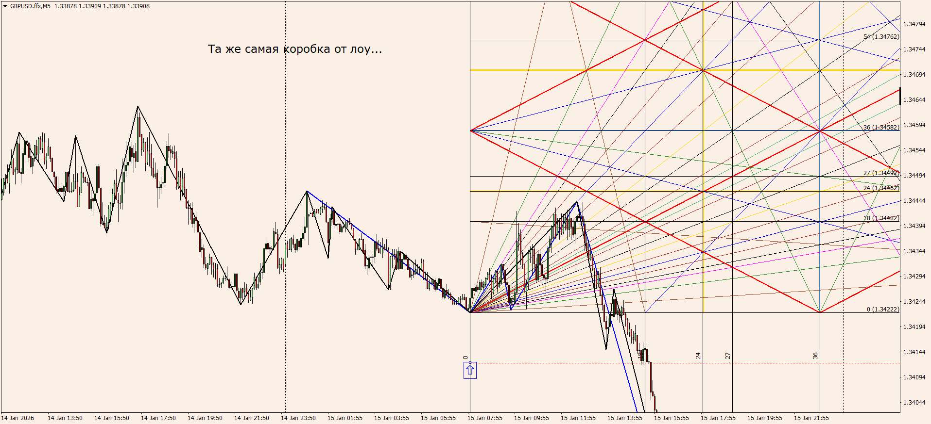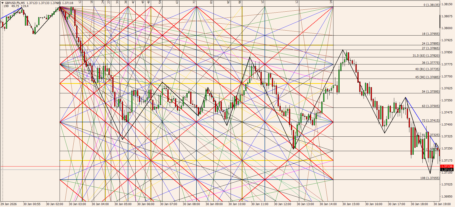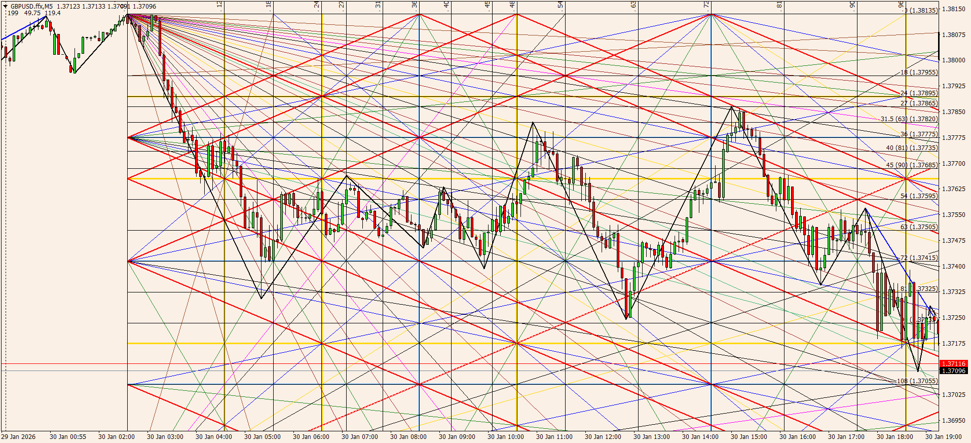 Вот именно знание моделей и мат. пропорций с углами, позволит тебе встать четко на конце коррекции на м5 тренде, и спокойно ехать дальше на часовом...