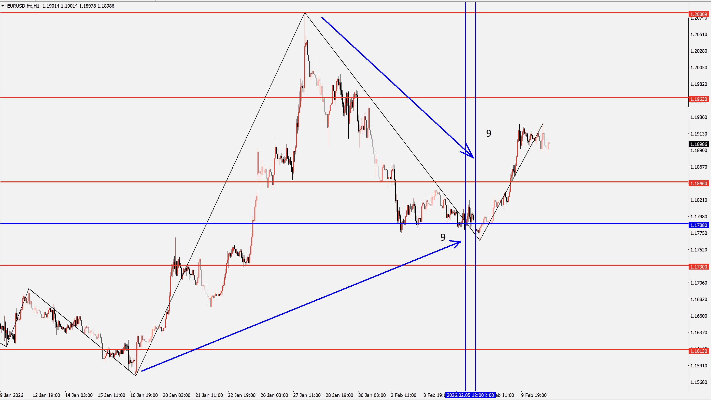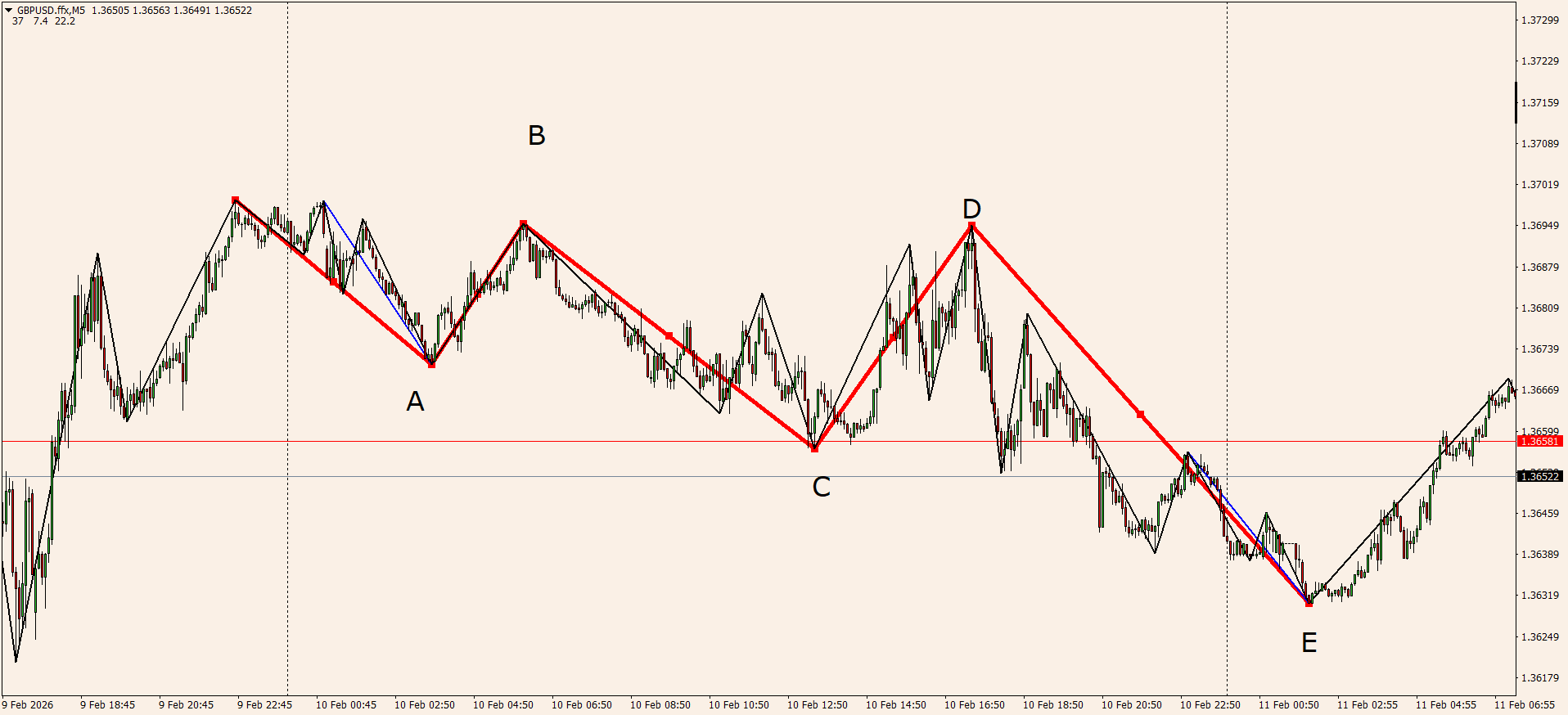 Есть уровни в шаблоне, возле которых обычно разворачивается тренд. Вот и ждем пока цена не придет в одну из точек-уровней.